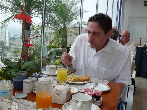 Today, Davison and I started with a quick breakfast up on the 11th floor of the hotel overlooking the Miraflores neighborhood of Southeast Lima. The hotel serves a beautiful breakfast buffet from an incredible vantage point above the South Pacific Coast!