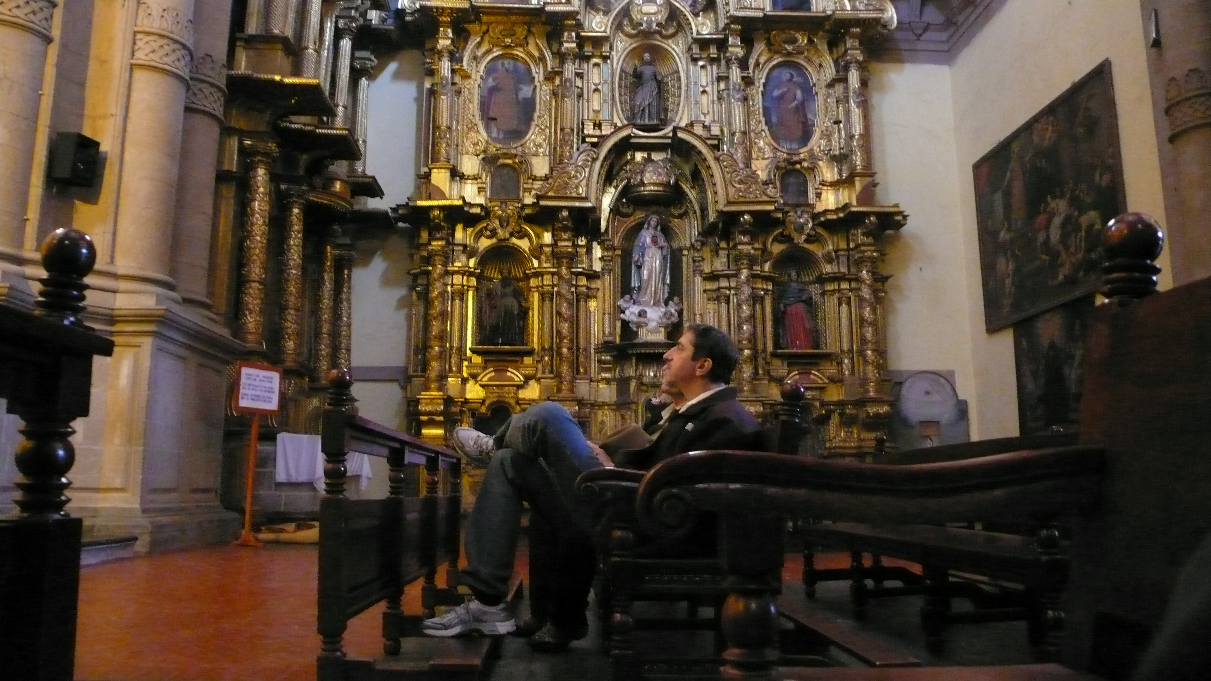 Ornate altar, carved from cedar and overlaid with gold and silver, inside the Iglesia de la Compania de Jesus