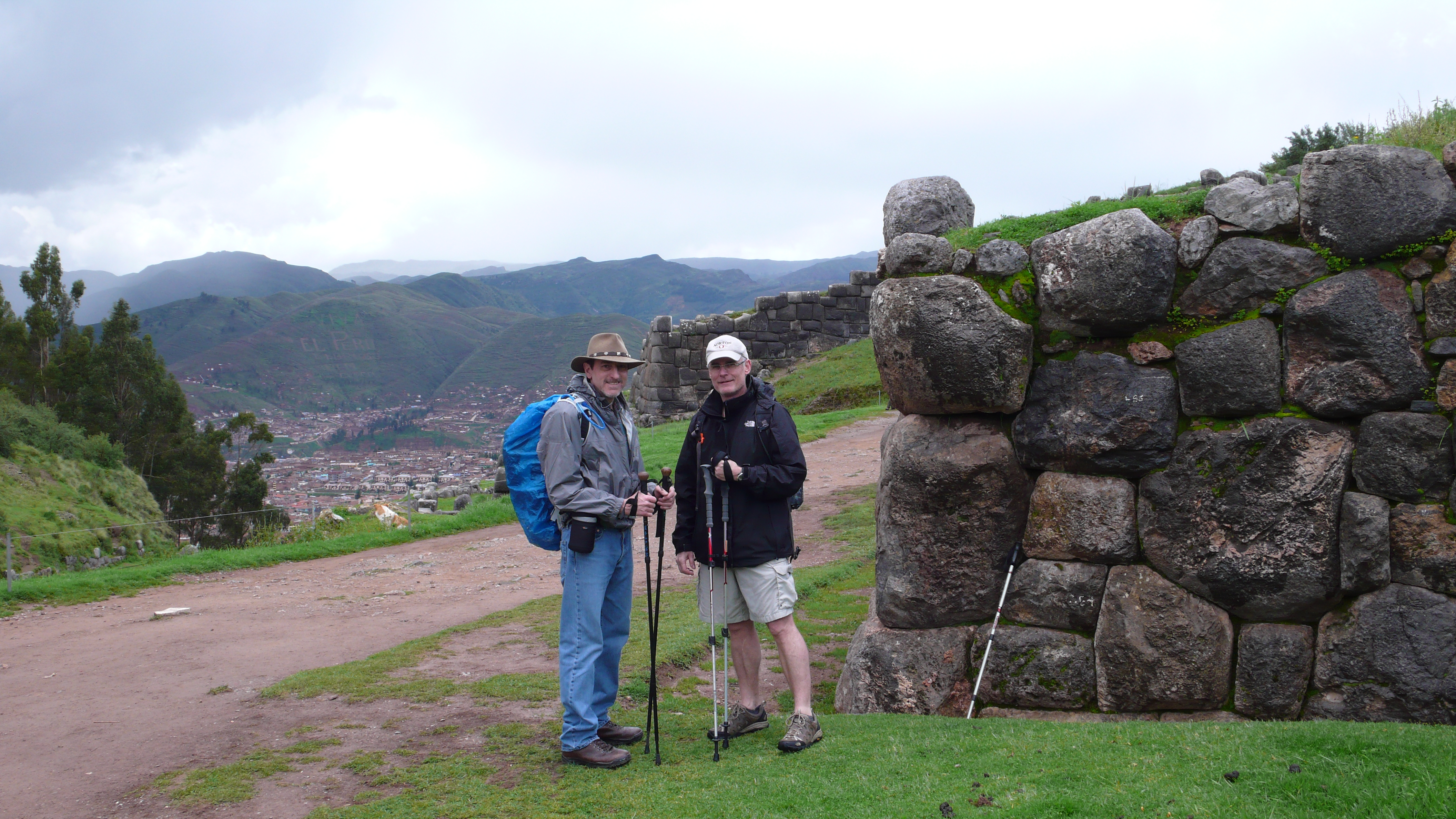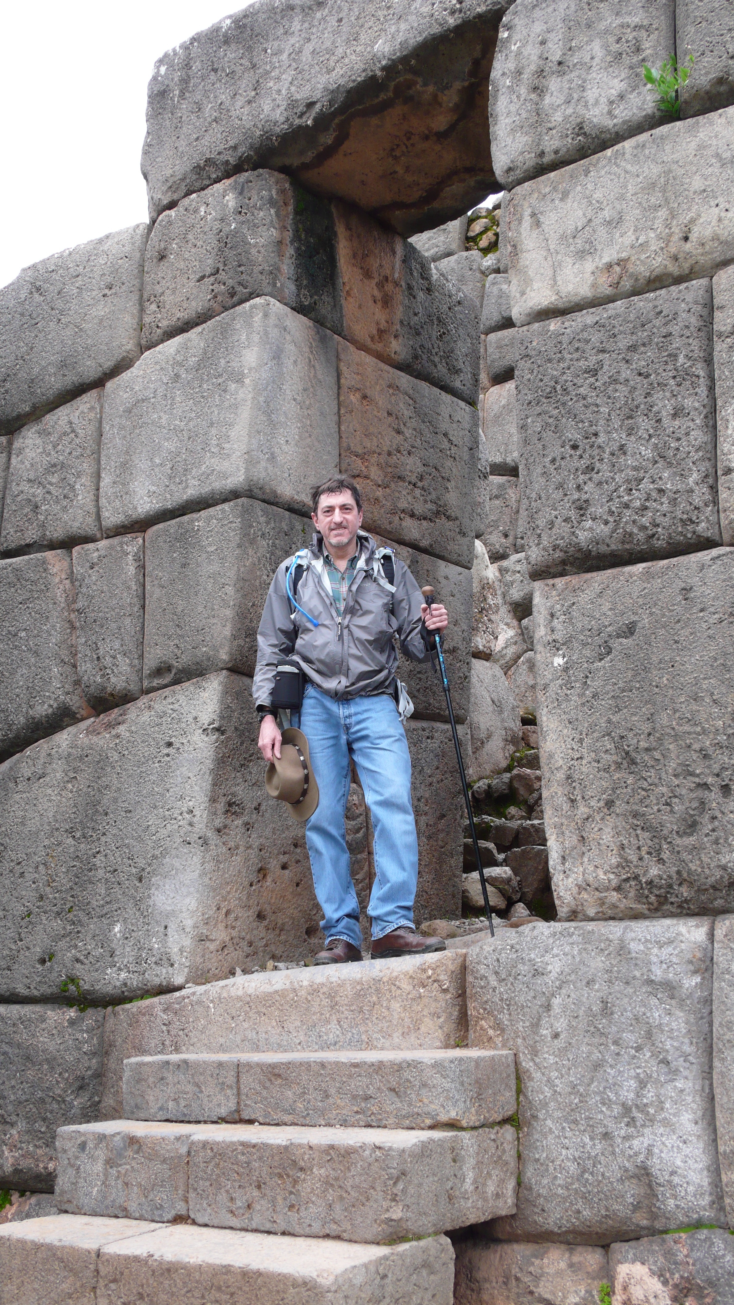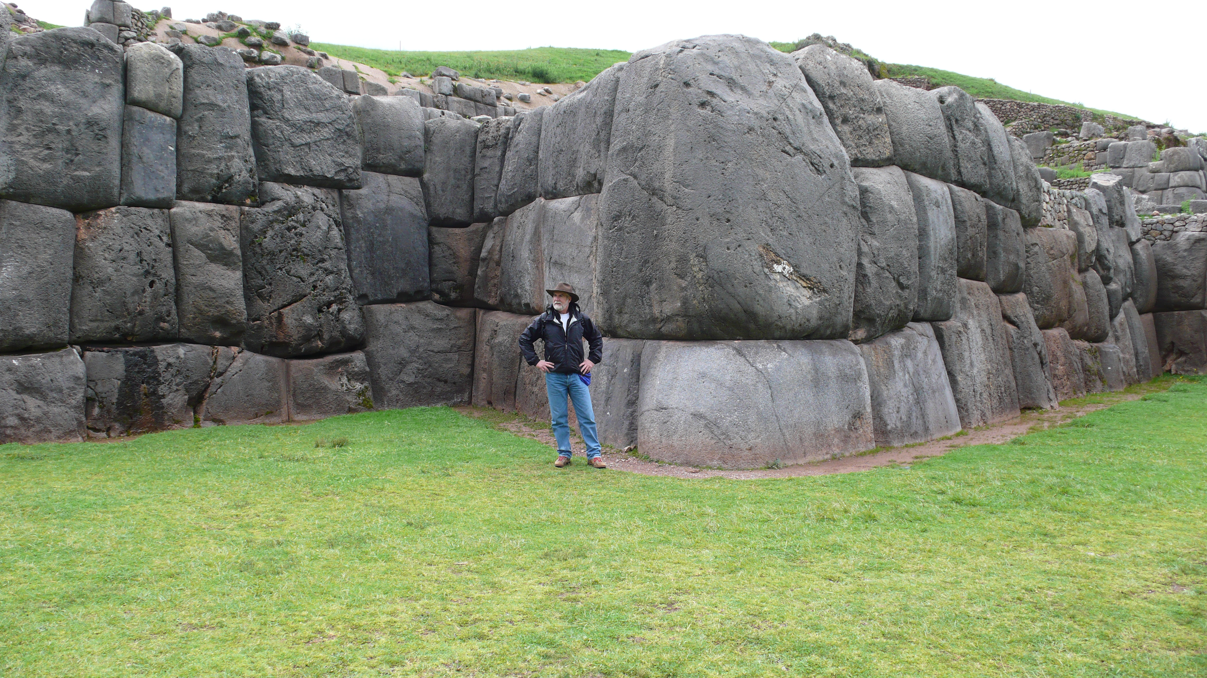 Since tomorrow we leave on the Inca Trail Trek, today we wanted to test our acclimation and explore some area ruins. Everything in Cusco from the center of town is “up”, what better way to test our condition than to take a hike up the hill behind our hotel? So, following an ancient street called Pumacurso, a right turn as we exit the hotel, up to the famous Inca fortress of Saqsaywaman (pronounced “sexywoman”…yes, that’s right!) where the Spaniards and Inca had a series of decisive battles in the mid-1500’s. When the Spaniards eventually won, they dismantled the fortress and used the upper ramparts and battlements for construction of their cathedrals and palaces around Cusco. What remains today, though, is a remarkable example of Incan stonework, as you will see: