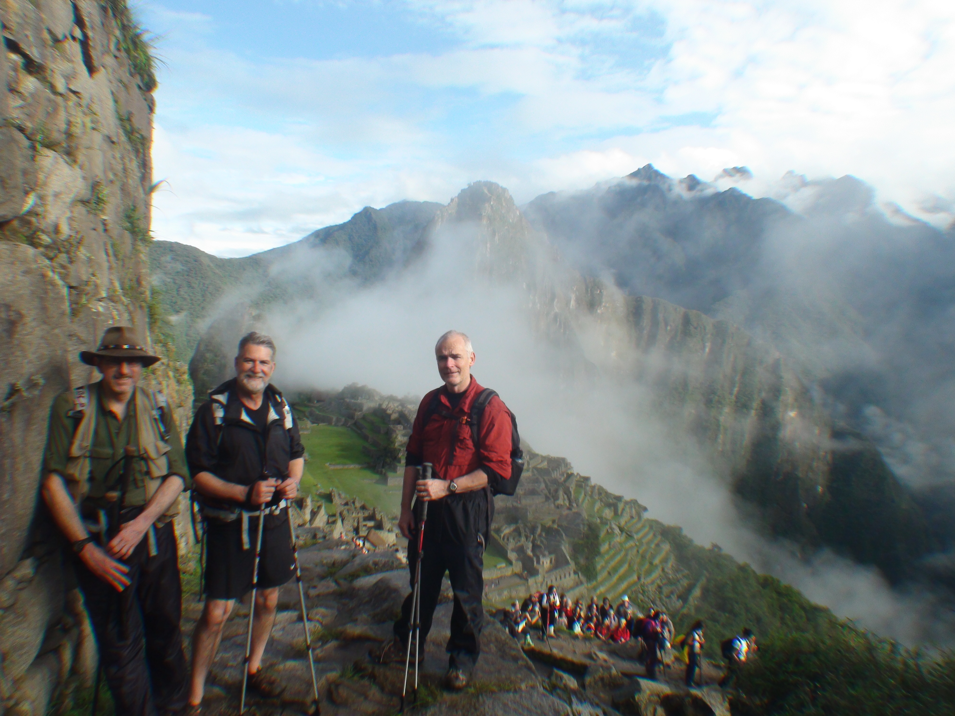 It’s done! We’re safely settled at the Hotel Monasterio in Cuzco (new spelling preferred by our Quechuan Inca Trek guide, Julian Perez), but the whole story of our Inca Trail Expedition will be laid out in a series of posts over the next few days. The physical and mental challenges, the weather, the beautiful trail experience with our porters, cook and guide from Llama Path, the interaction with our fellow pilgrims, the final glorious descent to Machu Picchu on the last day, and the Dunkirk-like escape from Agua Calientes and the raging Urubamba River yesterday! It’s a story that will thrill, chill and amaze…and hopefully inspire, many of you to reach for that dream that you thought might never be achievable. The photos alone will take a while to sort through and post, much less the memories, impressions and images of the experience that are bouncing around in my head as we get ready to fly to Lima at noon today, and then say goodbye to Peru…for now!