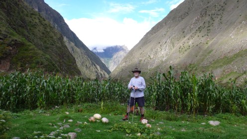Etzold and field of maize next to our first night's camp site on the Inca Trail to Machu Picchu: Wayllabamba