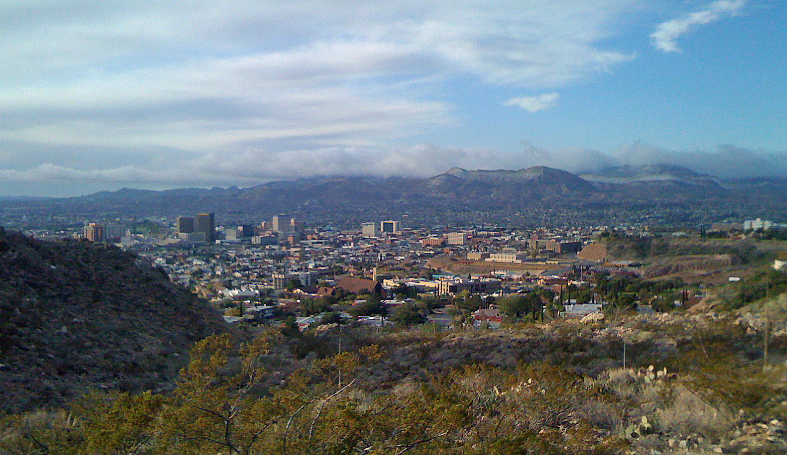 View of the Pass of the North today, looking south from Scenic Drive: Downtown El Paso, Texas and Juarez, Mexico – two cities, two countries, one community of over 2 million people!