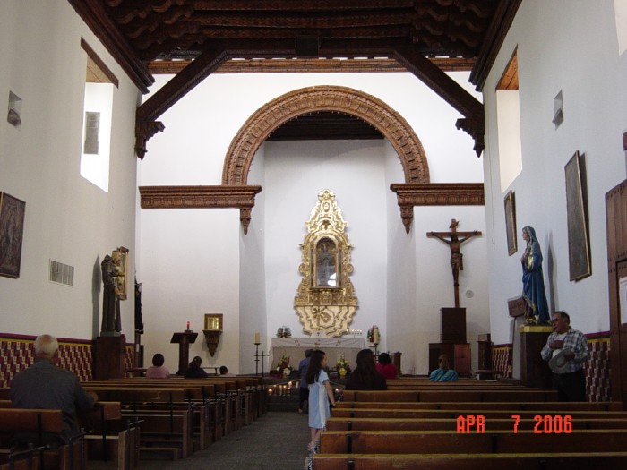 Nearly thirty years later, in 1659, Fray Garcia once again returned to the Paso del Norte, determined to establish a permanent mission at this strategic location on the Camino Real (the Royal Road) between Mexico City and its capital of New Spain, Santa Fe. Choosing an elevated rock terrace that was protected from seasonal Rio Grande flood waters, and with the help of some friendly Manso Indians as well as neighboring Suma Indians (nomadic hunter-gatherers who ranged from the Rio Grande south to the eastern flanks of the Sierra Madre in Chihuahua) and ten Piro Indian familes, the tiny settlement on the southern bank of the river began building a large permanent church, Nuestra Senora de Guadalupe, which was finished eight years later and formally dedicated January 16, 1668. That mission still stands today in downtown Cd. Juarez, and is a beautiful example of 17th Century Rio Grande Mission architecture.