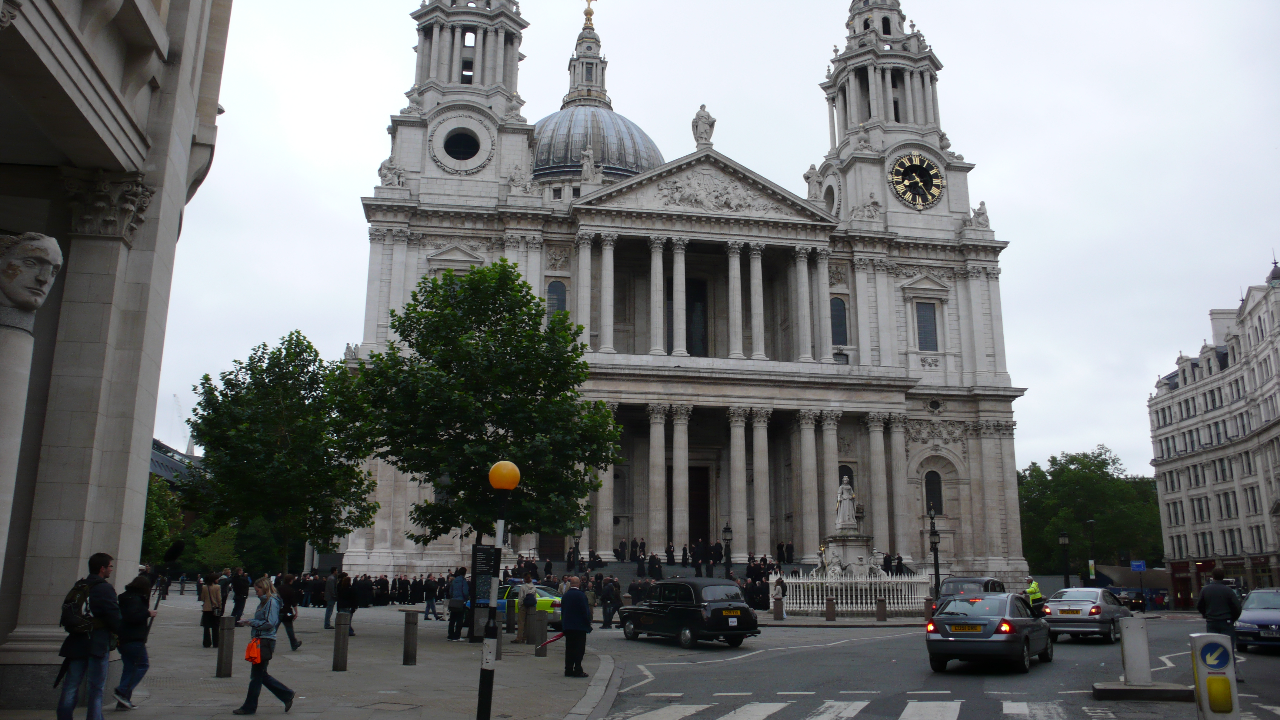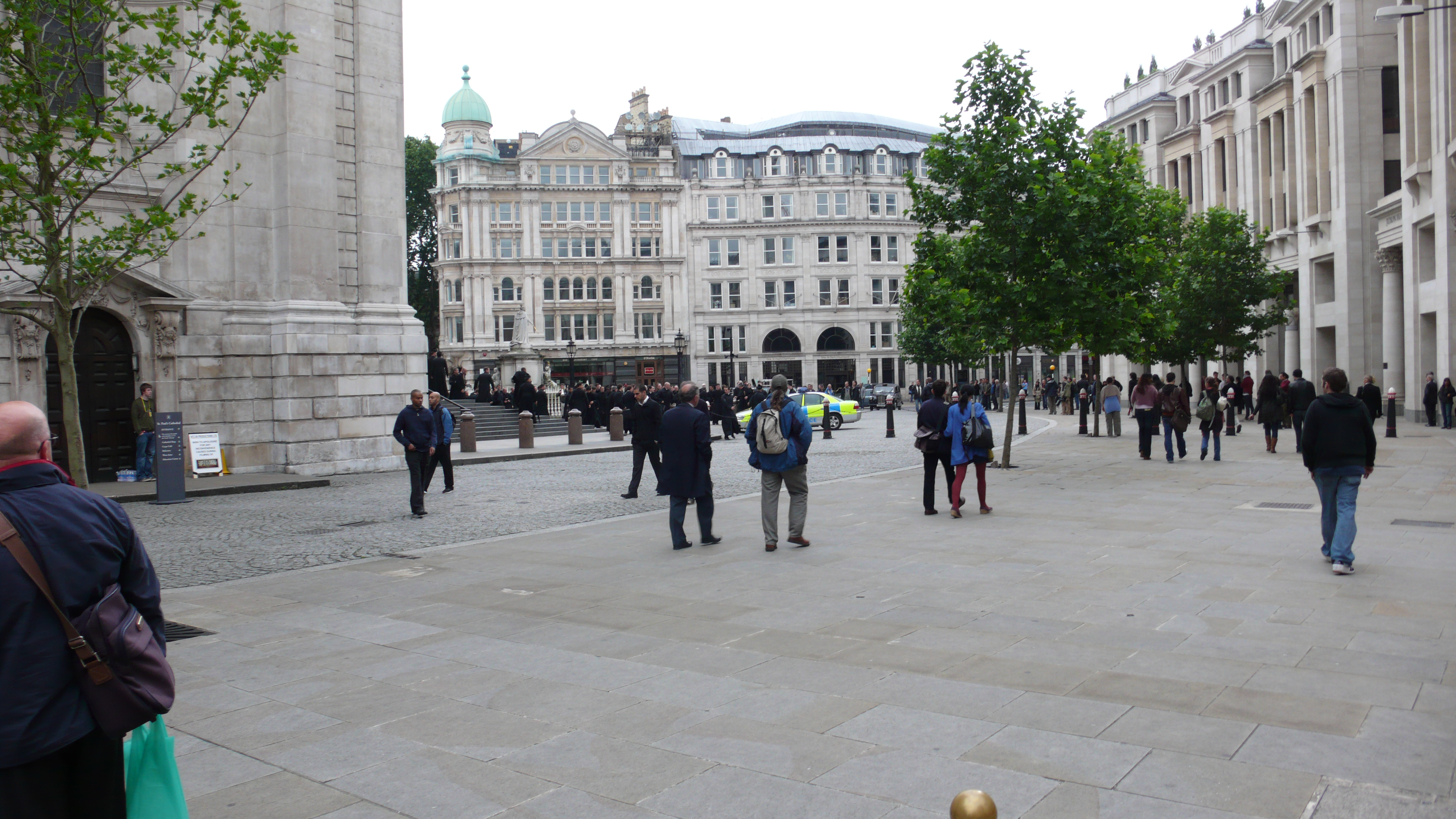 I came upon the above sign between Paternoster Square and St. Paul’s Cathedral, looking around I noticed hundreds of men wearing the same black priest’s cassock. They were actively engaged in filming sequences for the second installment of the National Treasure movie series called “Book of Secrets”. Between Dan Brown and the Temple, National Treasure’s secret book, some Jack the Ripper and Sherlock Holmes, add a little Jeckle and Hyde, and the Werewolf saga and you’ve got a real explosive mixture here in London!