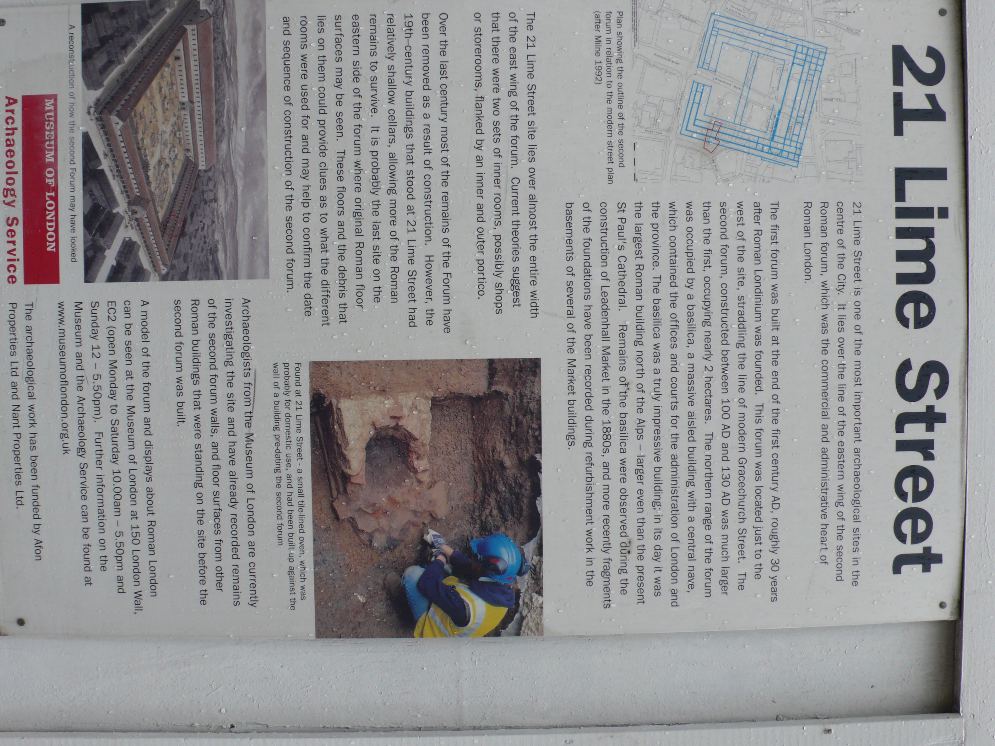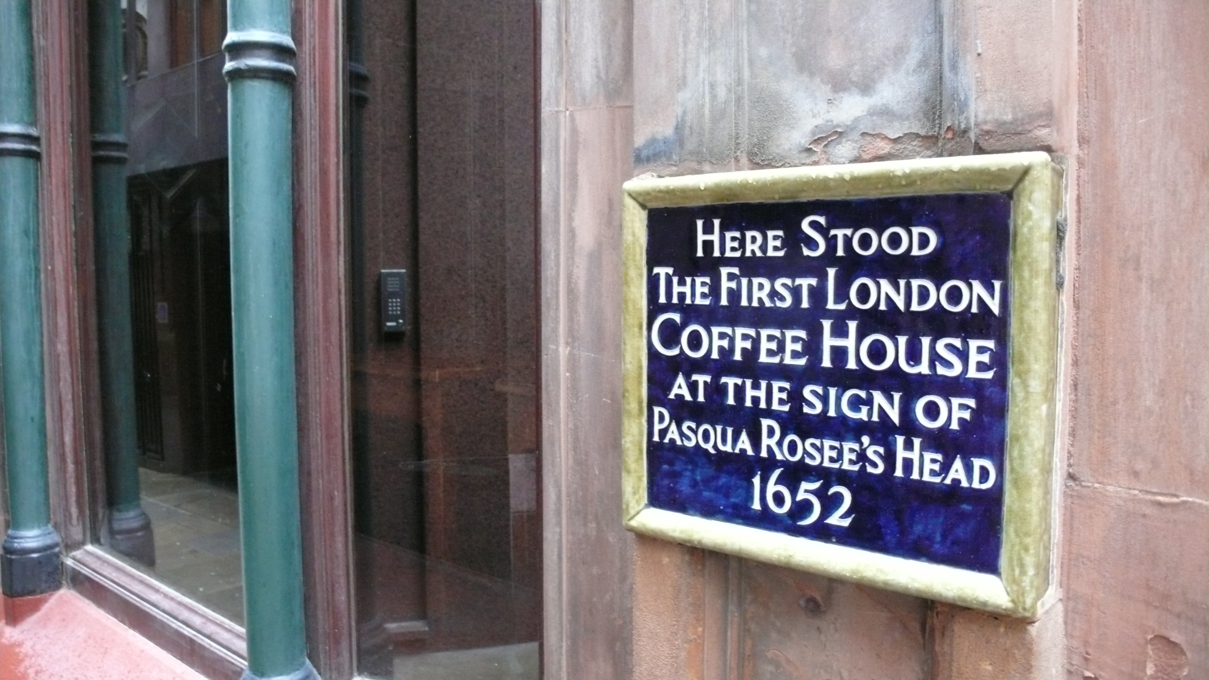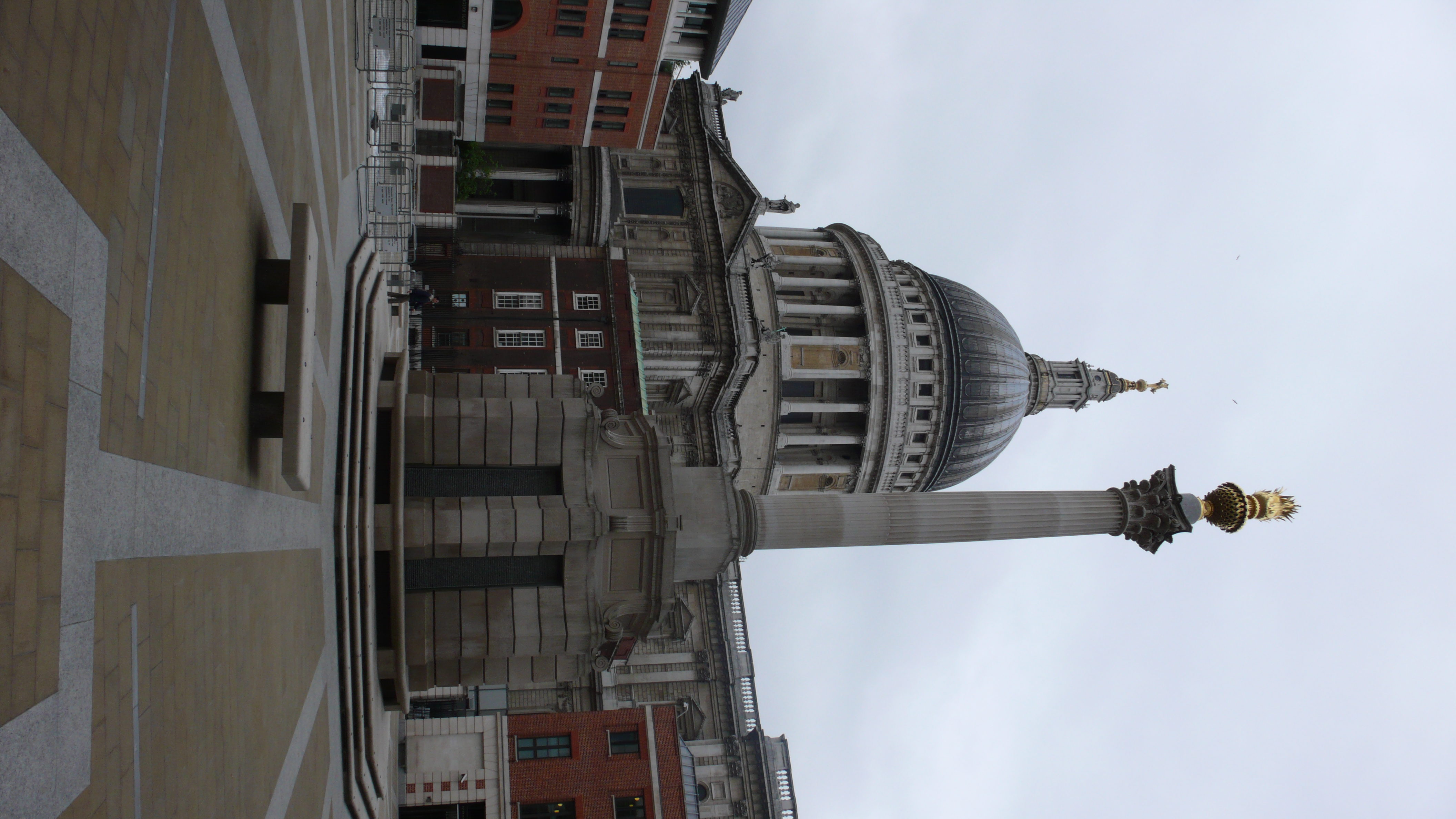 Paternoster Square, home of the London Stock Exchange, is the first main stop at the beginning of the walking tour. The Square contains this 23-meter high replica of one of the original columns from the portico of the St. Paul’s which burned in the Great Fire of 1666. This monument, the largest erected in London in over 100 years, is made of Portland stone and is lit at night by fiber optics. The prominent dome of the present St. Paul’s Cathedral, designed and built by Christopher Wren, is seen in the background.