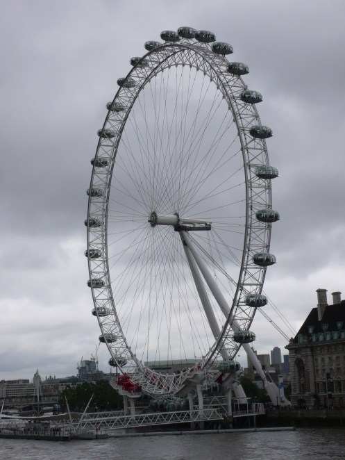 The tour begins at the Westminster Tube Station (Exit 4) on the Embankment at Bridge Street. The huge ferris wheel built for the Millennium Celebration dominates the riverscape. It was opened in March 2000, originally called “The Millennium Wheel“, and was sponsored and partially funded by British Airways. The project was the vision of David Marks and Julia Barfield, a husband and wife architect team. The wheel design was used as a metaphor for the end of the 20th century, and time turning into the new millennium. Since then, it has morphed into “The London Eye” and is the United Kingdom’s most popular paid visitor attraction with some 3.5 million riders per year. Thirty-two pods, each weighing some 20,000 pounds hold approximately 25 passengers each and travel at a pace of 26 centimeters per second, allowing passengers to step on and off without the wheel stopping on the 30-minute ride. I have to admit, I was never inclined to wait in the long lines and put up with the crush of passengers in each of the bus-sized pods on the huge wheel!