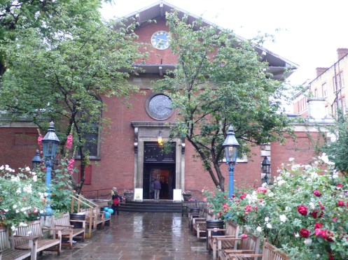 St. Paul’s Church off King street (not to be confused with St. Paul’s Cathedral) came to be known as “The Actors’ Church“, serving the needs of the new neighborhood developed by the Earl of Bedford on this 16th Century real estate land play. In keeping with its theatre tradition, Professor Higgins meets Liza Doolittle here in the play “My Fair Lady”, and several notable actors are remembered within its walls: Boris Karloff, Vivien Leigh, and Charlie Chaplin, among others. The gardens host an annual Mayfair and Puppet Festival, harking to the story of Samuel Pepys seeing a Punch & Judy puppet show here in 1662.