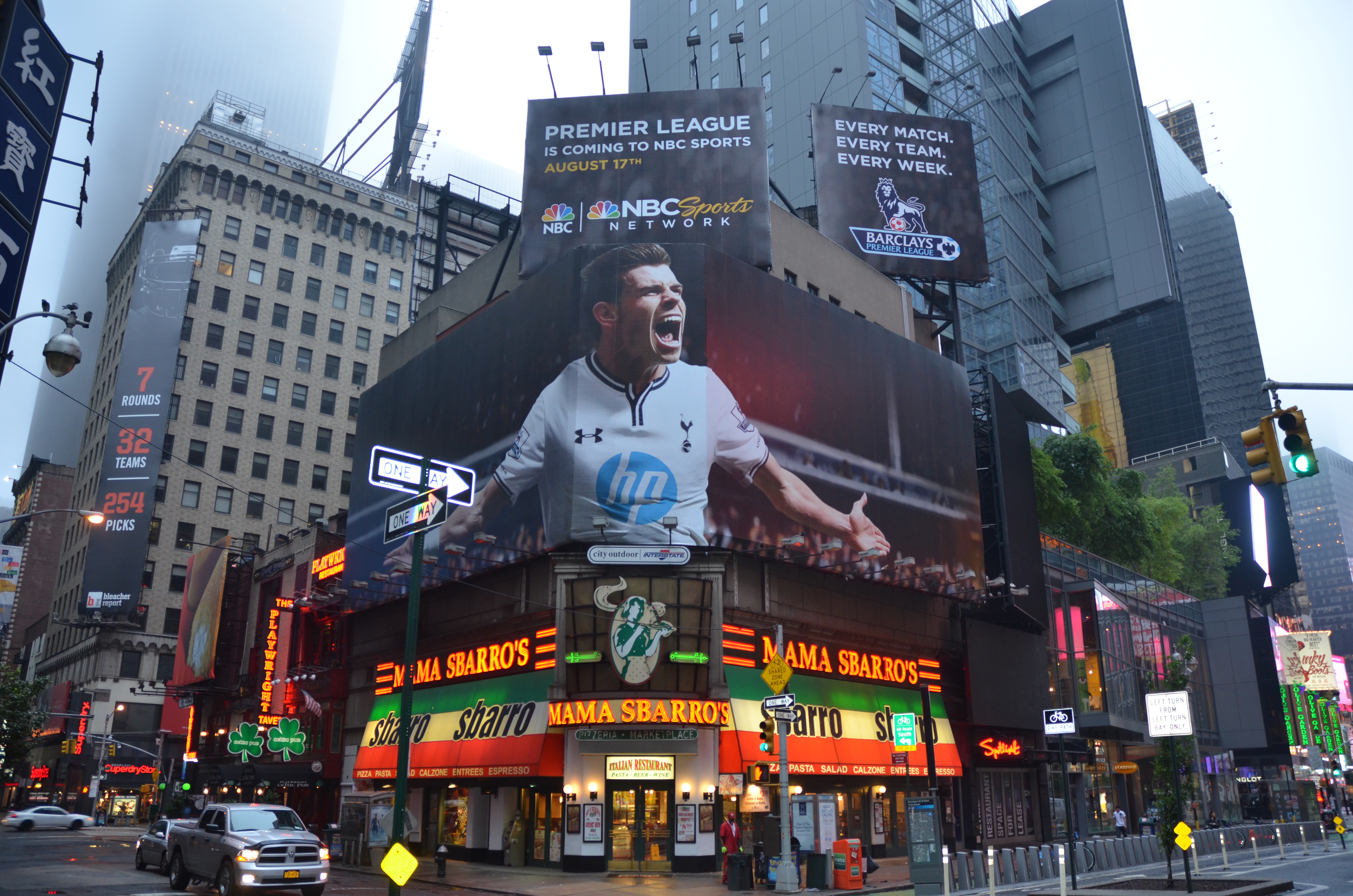 Gareth Bale -on a Times Square billboard-helps promote NBC sports coverage of the Barclays Premiere League 2013-2104