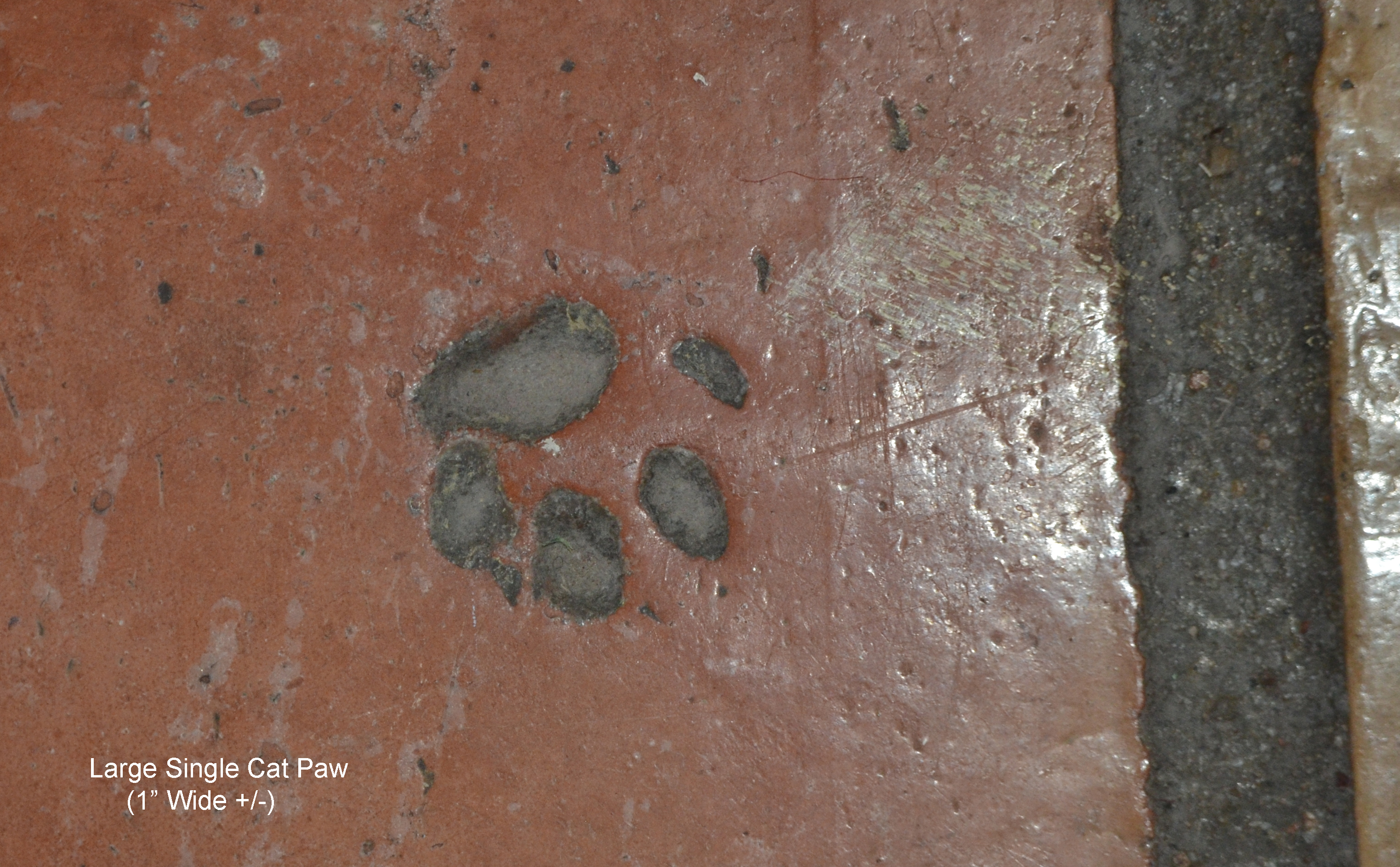 Todd….thank you for checking out my blog. The tracks that I have discovered are “natural” to the Saltillo, Mexico area where original Saltillo Tiles were made. The occasional print are from either (1) watch dogs let loose in the factory yard at night to guard, (2) neighborhood cats who sneak through the yard at night, (3) or peacocks who were used as guard animals instead of dogs. I’ve never see or heard of deer, bear or turkey prints. Sorry.