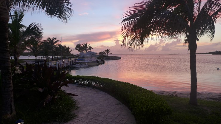 Sunset across the Sea of Abaco, sheltered by the reef and cays.