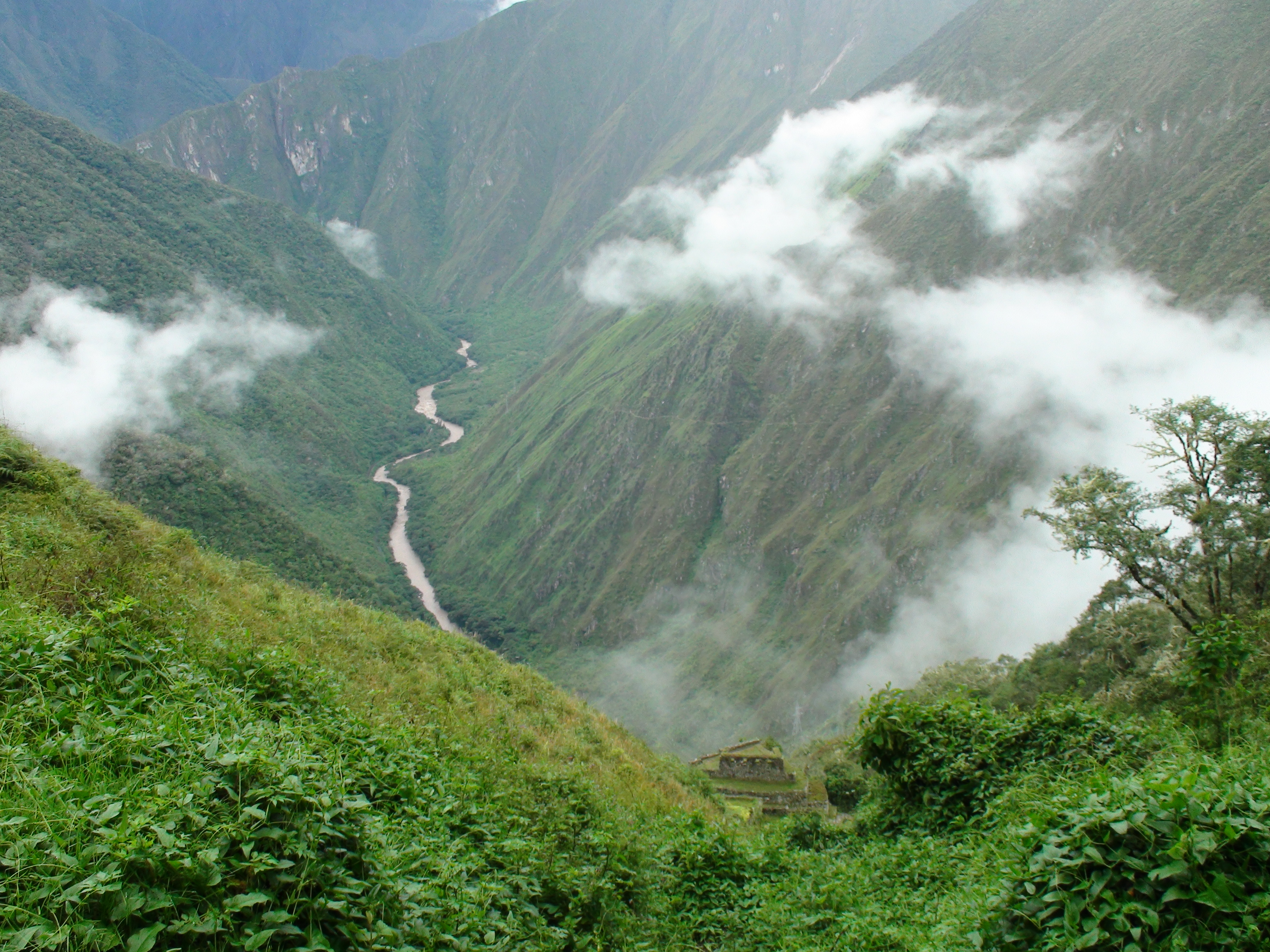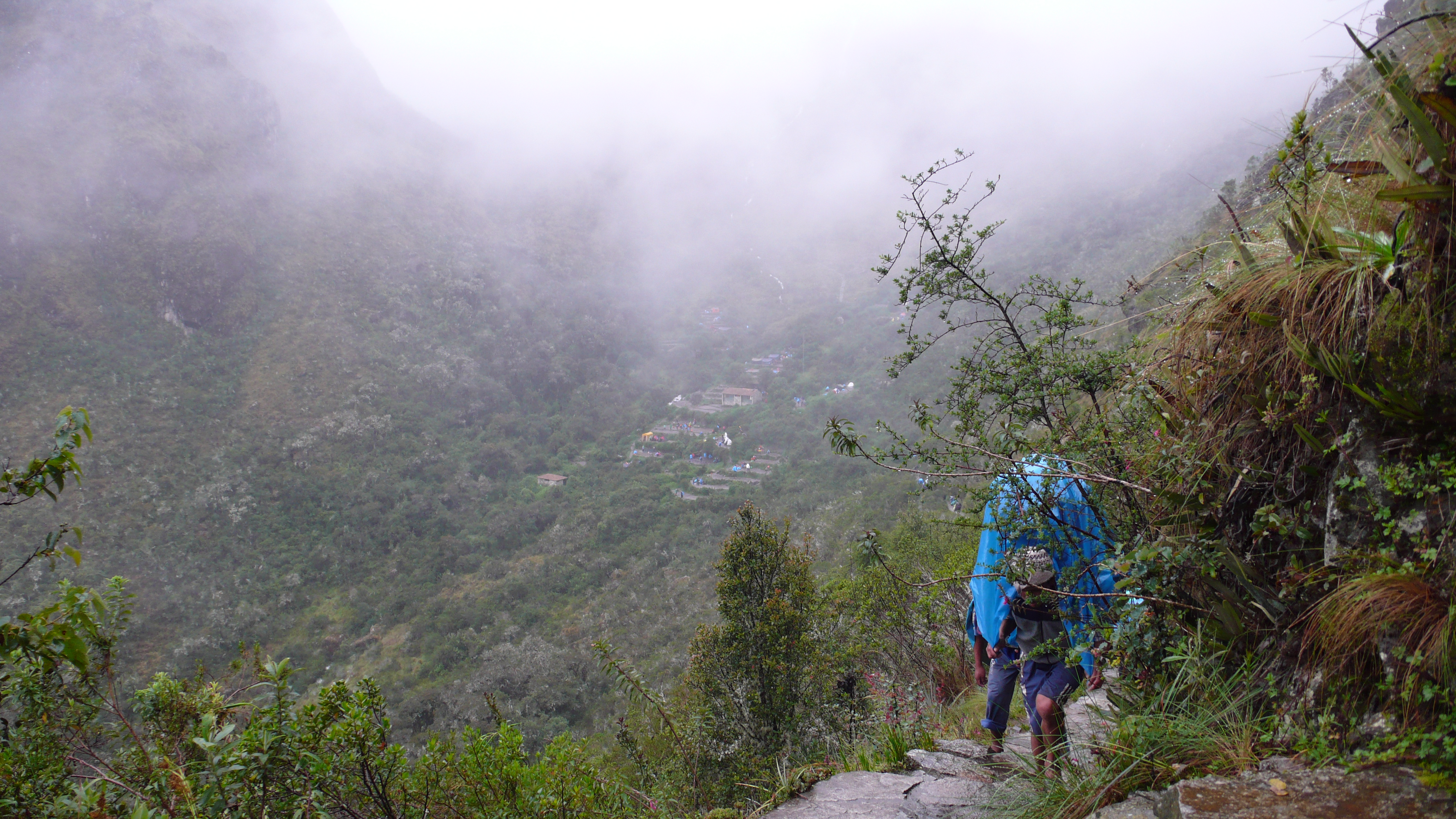 View from the trail down into the Urubamba Valley, and the village of Aguas Calientes far below….