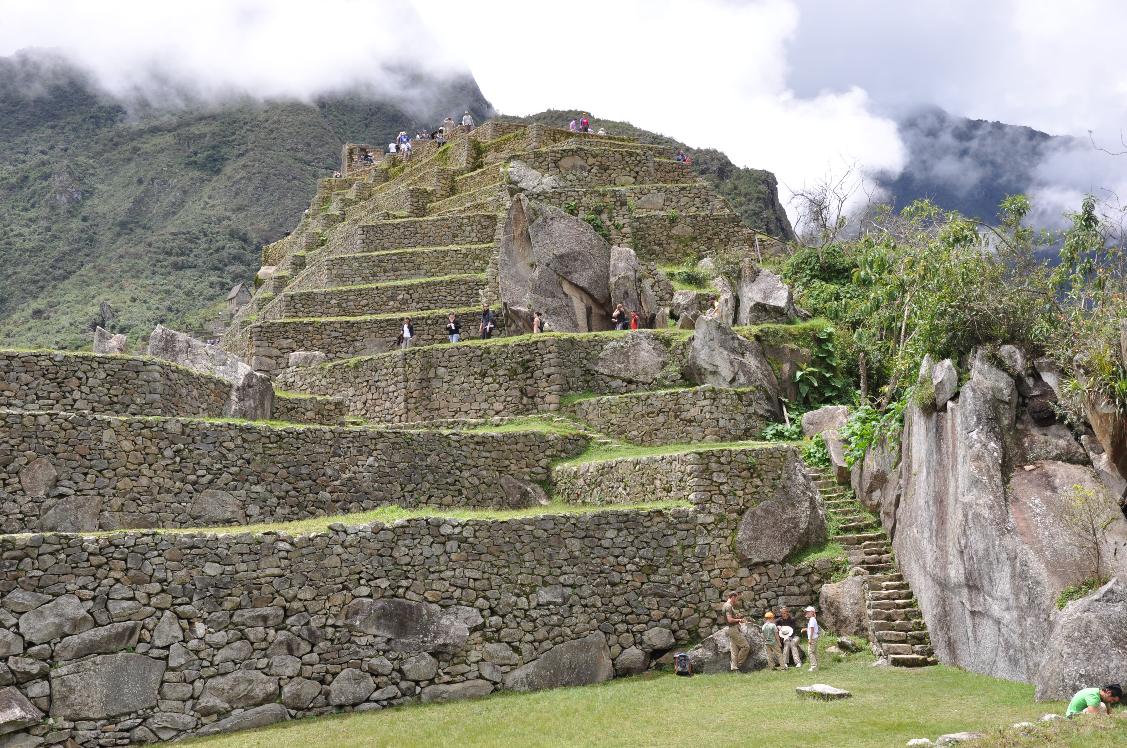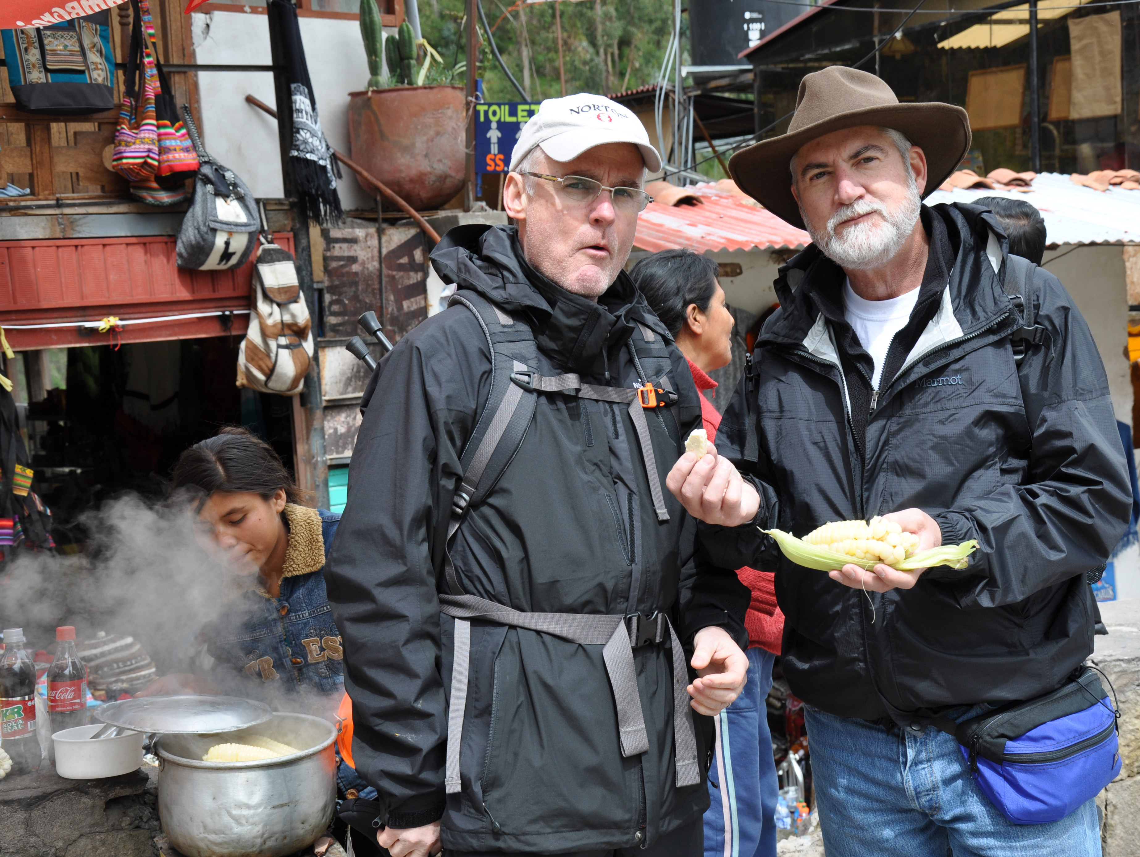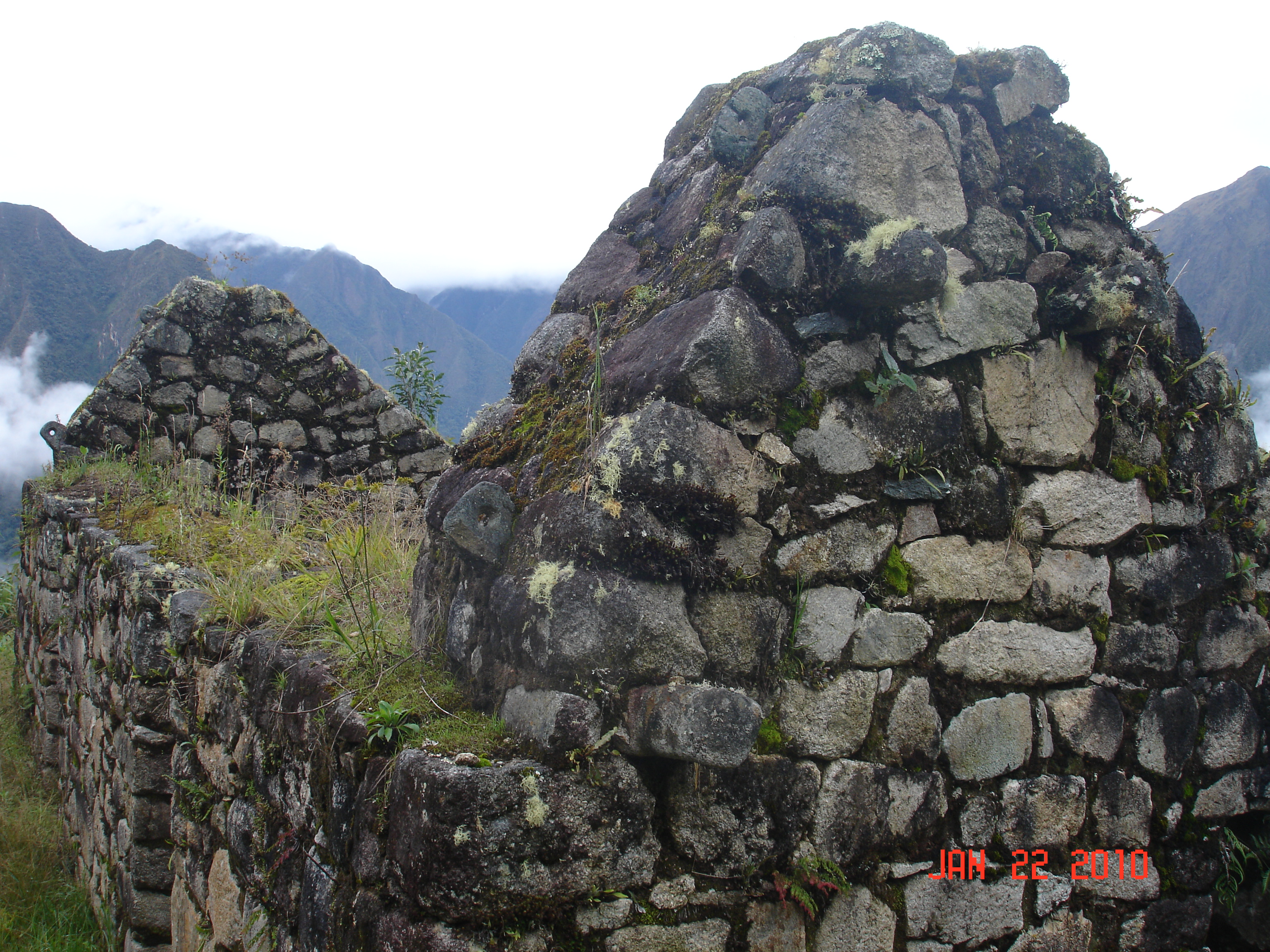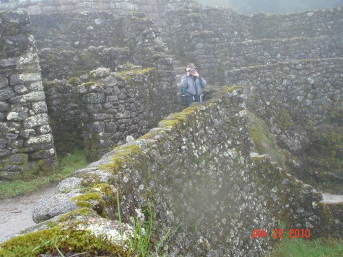 Later, walking up to another section of the ruins, we run into a couple we recognized from the Hotel Monasterio in Cuzco, he was hard to miss with his long, blond ponytail. We visited with them about our adventure on the trail, the challenges of the trek…and its rewards…made introductions and left them our blog site address so they could check back on us later. Turns out that Steve and Suzie Sullivan, from Berkeley, California, were a pretty famous couple! They founded one of the best known and highly respected artisan bakeries in the Bay Area: The Acme Bread Company! Someday I’ll stop into one of their shops in San Francisco and enjoy their bread creations…and remember our chance encounter in 2010 in Peru!