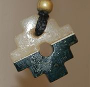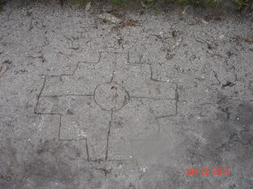 Carved stone in the shape of the Inca Cross, or mountains, in the Temple of the Three WIndows