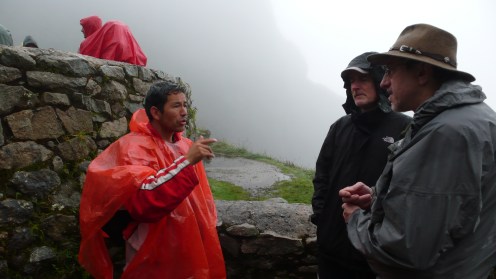 There was Cyril, the South African rugby player traveling with his cousin Lynn: who had lost his camera case and the memory card stored there – containing all his travel images for the past several months – on the first morning of the trek as they left the Kilometer 82 checkpoint. He came through our Pacaymayu Campsite the other day with a couple of his porters asking every trekker and every porter if they had happened to pick up that case on the first morning. Now, the smile on his face and sparkle in his eyes told us, before we asked, that he was successful. A porter had actually picked it up the same morning he lost it! Here was a real life example of one of the Inca three-way steps: Don’t Steal, Don’t Kill, Don’t be Lazy.