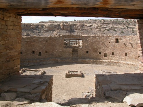 The “Enigmatic Window” on the north side of Temple of the Sun, and distant mountains…